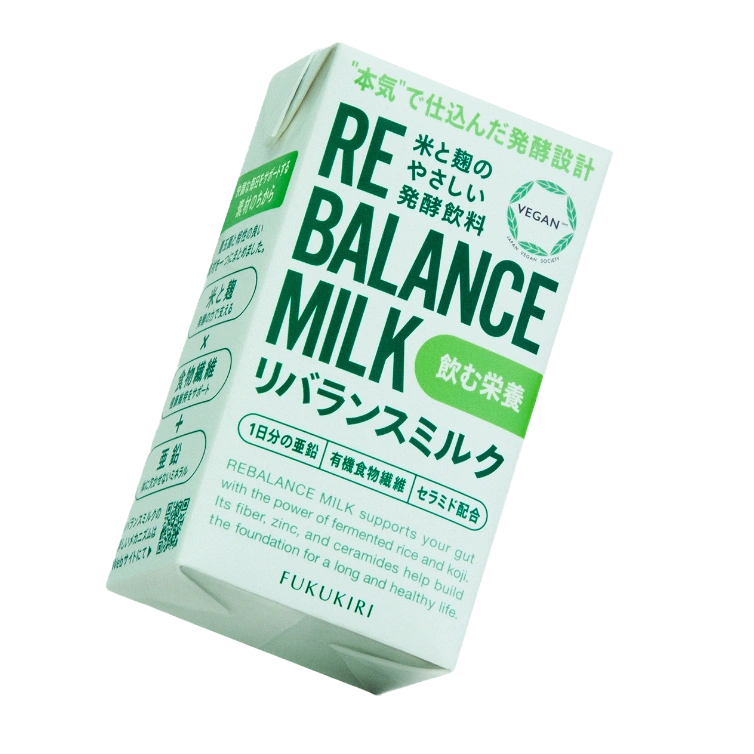 リバランスミルクは、発酵×食物繊維で“整え” 、セラミドと亜鉛で“体内”に寄り添う設計。