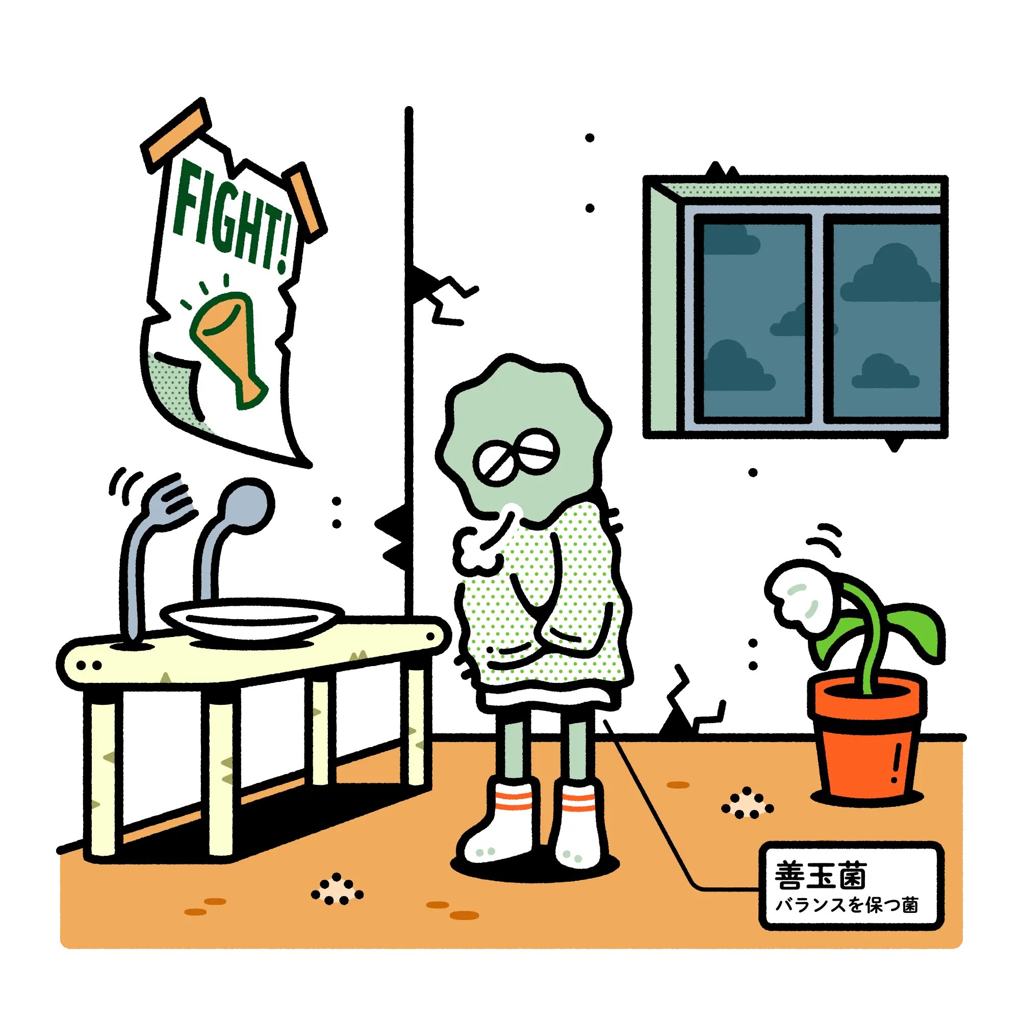善玉菌をサポートし、健やかに保たれている状態。コンディションや美容の土台となる理想的な環境になります。